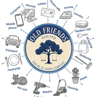 We can arrange a range of services including help with: Technology, Admin, Care, Home help, Cleaning, Washing, Ironing, Welfare visit, Shopping, Gardening, Repairs, Trades, Pet-care, Food prep and Transport and whatever else you may need :-)