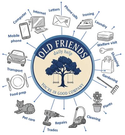 We offer a range of services including help with: Technology, Admin, Home help, Cleaning, Washing, Ironing, Welfare visit, Shopping, Gardening, Repairs, Trades, Pet-care, Food prep and Transport and whatever else you may need :-)